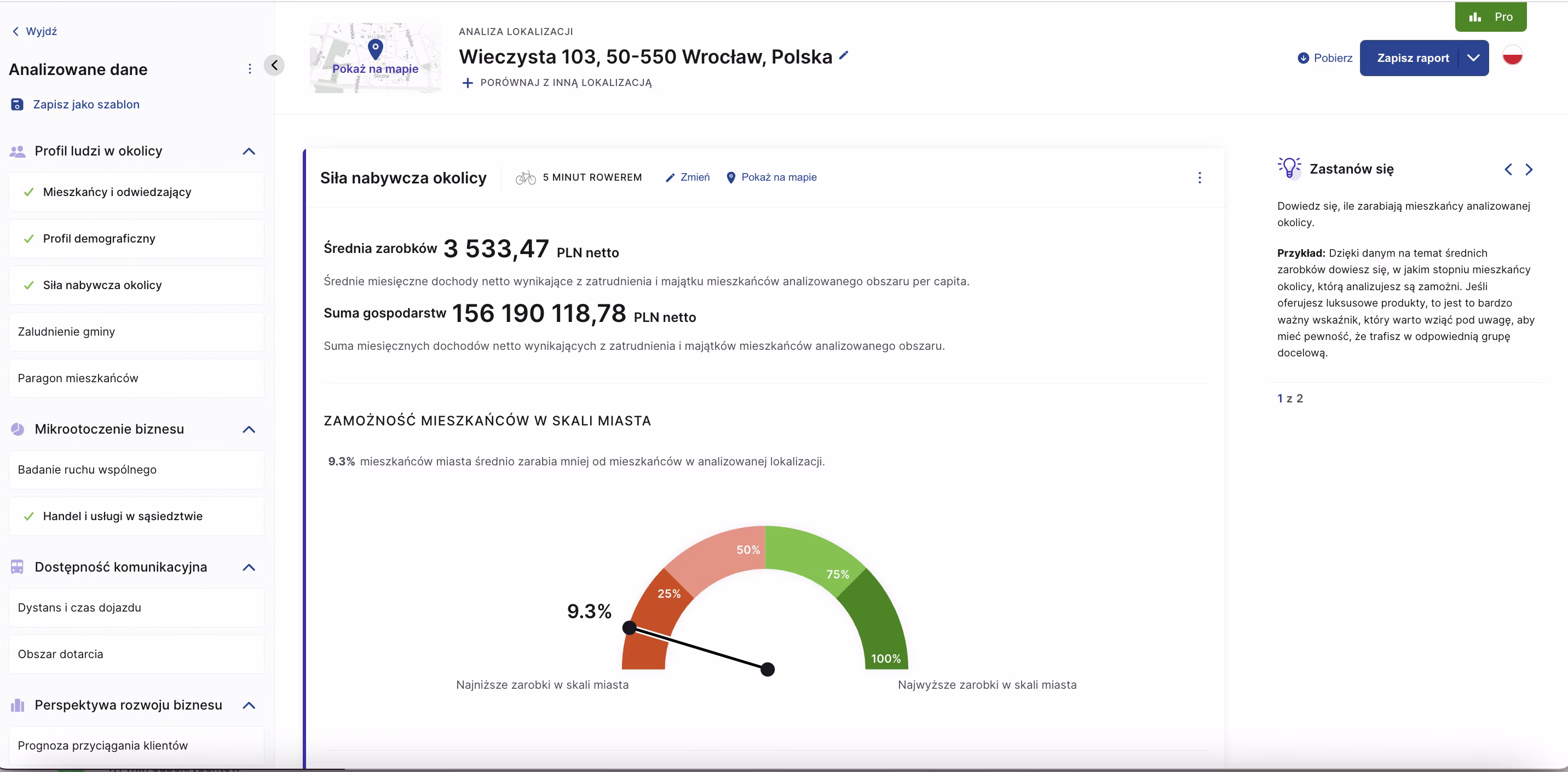 Analizy w aplikacji Placeme pozwoliły naszemu klientowi na dokładne sprawdzenie lokalizacji pod kątem: